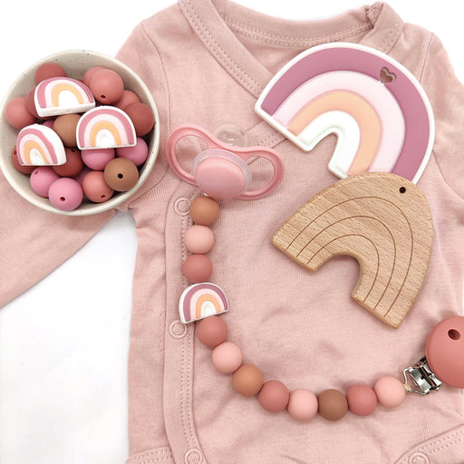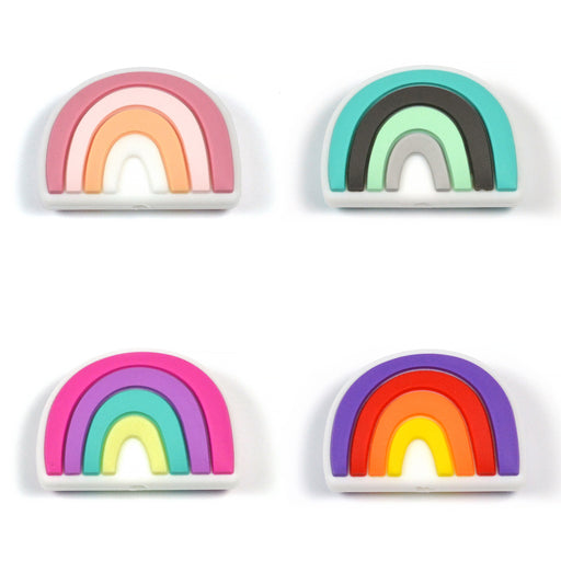Silikonpärla i form av ett moln med regnbåge, 100% BPA-fri.Pärlan har samma motiv på båda sidor.Färgerna i regnbågen motsvarar ungefär följande fär...