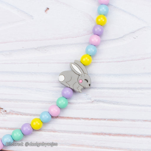 Silikonpärla i form av en söt kanin, 100% BPA-fri.Kaninmotivet är på båda sidor.Storlek är ca 29 x 25 mm.Tjocklek är ca 8 mm.Håldiameter är drygt 2...