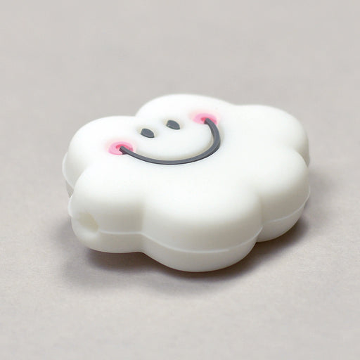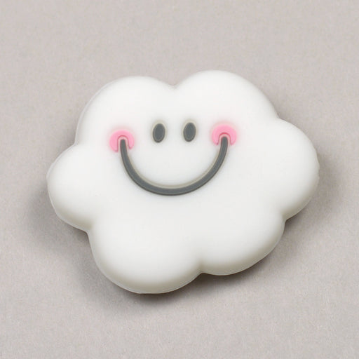 Motivpärla i silikon, moln, 100% BPA-fri.Pärlan har samma motiv på båda sidor.Storlek är ca 28 x 22 mm.Tjocklek är ca 8,5 mm.Håldiameter är ca 2,5 ...