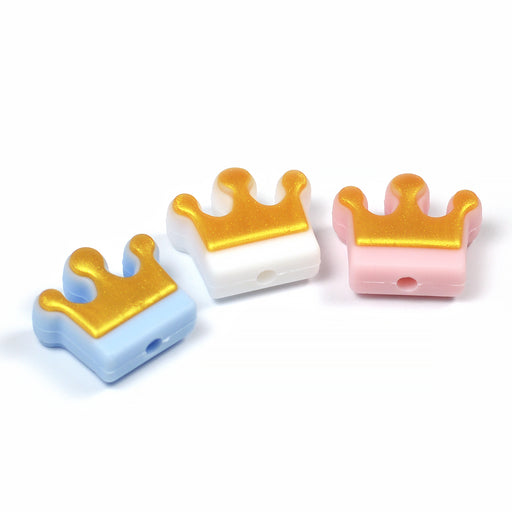 Silikonpärla i form av en krona med guldprint på ena sidan, 100% BPA-fri.Storlek är ca 17 x 15 mm.Tjocklek är ca 7,5 mm.Håldiameter är ca 2 mm.Pris...