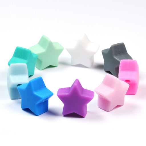 Silikonpärla i stjärnform, 100% BPA-fri.Storlek är ca 14 x 14 mm.Tjocklek är ca 8 mm.Håldiameter är ca 2,5 mm.Priset avser 1 st, välj önskad färg i...