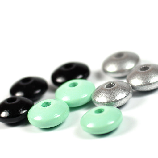 Fina trälinser, salivbeständiga och giftfria.Uppfyller kraven enligt DIN EN 71-3 och EN 71-9.Diameter är 10 mm.Tjocklek är ca 5 mm.Håldiameter är 2...