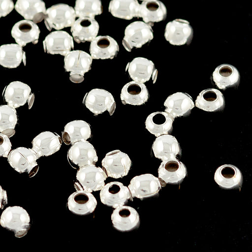 Runda, silverfärgade metallpärlor.Diameter är ca 3 mm.Håldiameter är ca 1 mm.Priset avser en påse med ca 100 st.