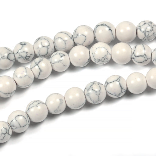 Runda pärlor i syntetisk turkos / howlit.Diameter på en pärla är ca 6 mm.Håldiameter är ca 1 mm.Priset avser en sträng med ca 64 st pärlor.