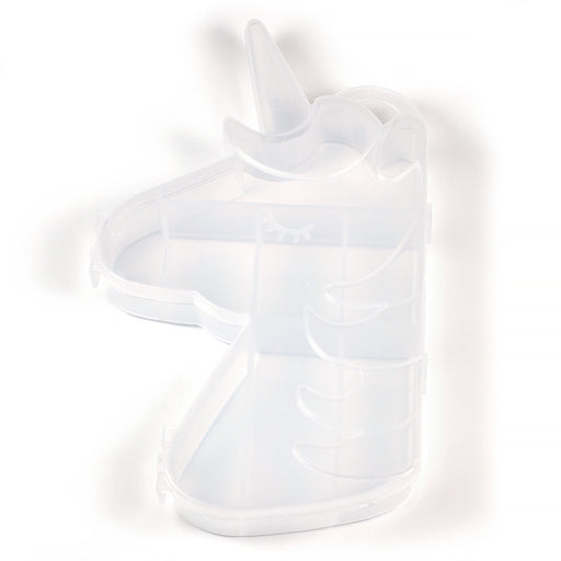 Söt, liten örvaringsask i genomskinlig plast, form av en enhörningshuvud.Asken är uppdelat i 8 fack i olika storlekar.Storlek på asken är ca 95 x 1...