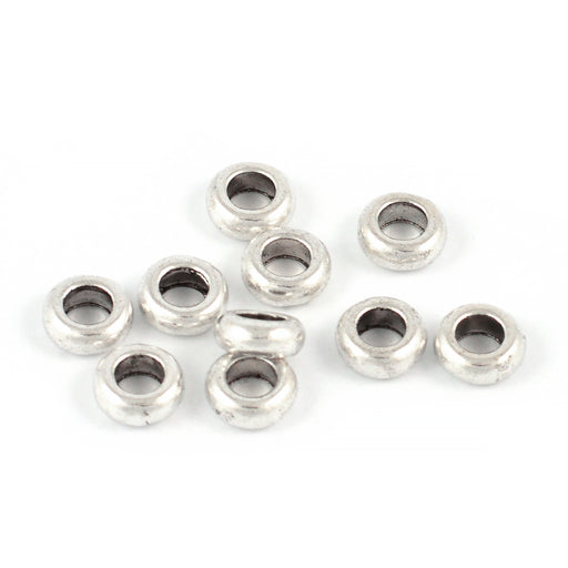 Antiksilverfärgade mellandelar, stilrena rondeller.Storlek är ca 7 x 3 mm.Håldiameter är ca 3,5 mm.Priset avser ca 20 st.