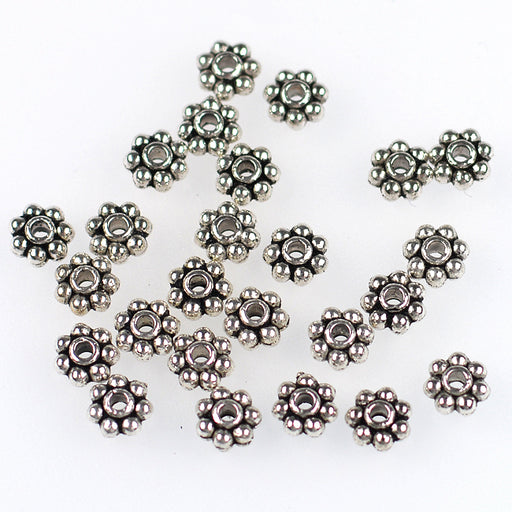 Mellandelar, daisy, antiksilver, 6mm, 100st