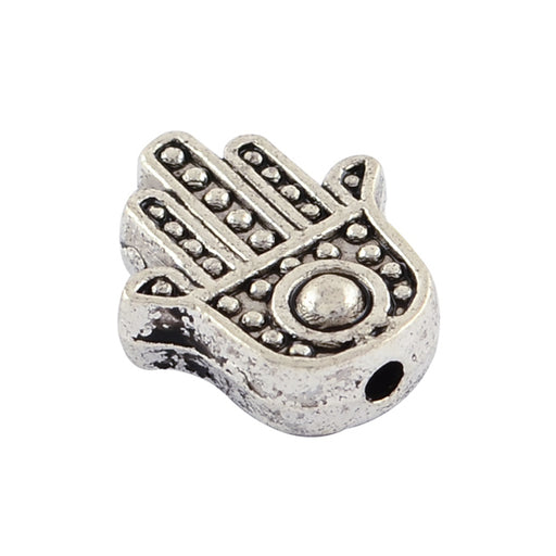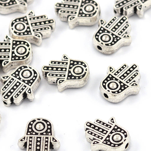Antiksilverfärgade metallpärlor, Hamsas hand, även kallad Fatimas hand. Motiv på båda sidor.En pärla på max. 4mm får plats i handens centrum.Storle...