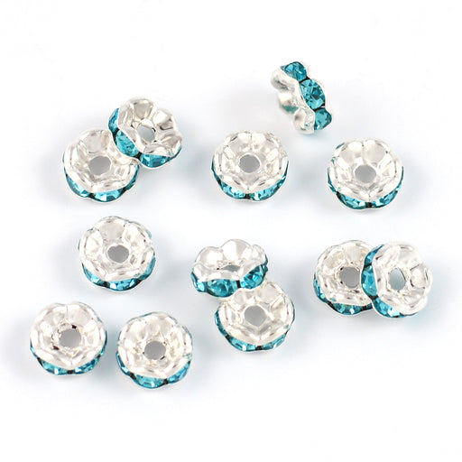 Visa fullständig informationEleganta rondeller med strass, silver-ljusblå, 6mm, 20st
