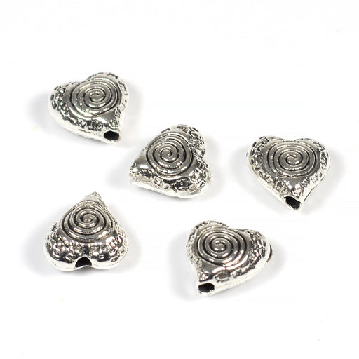 Antiksilverfärgade metallpärlor, hjärtan med spiral på båda sidor.Storlek är ca 8,5 x 9 mm.Tjocklek är ca 5 mm.Håldiameter är ca 1,5 mm.Priset avse...