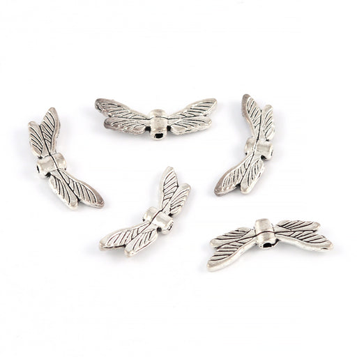 Antiksilverfärgade trollsländevingar.Storlek är ca 20 x 7 mm.Tjocklek är ca 1 mm.Håldiameter är ca 1 mm.Priset avser en påse med ca 10 st.