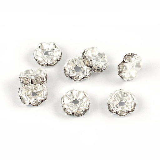 Eleganta rondeller med strass, silver-vit, 8mm, 20st