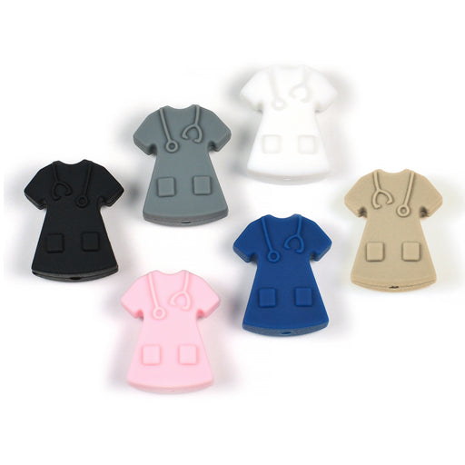 Silikonpärla i form av en läkarrock eller sjuksköterskeklänning, 100% BPA-fri.Pärlan har samma motiv på båda sidor.Storlek är ca 21 x 25 mm.Tjockle...