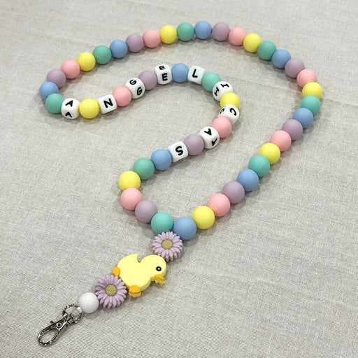 Här har vi använt jordfärger och vitt i silikon ihop med motiv stetoskop till en sjuksköterska sam Premium Wood träpärlor. Dessa bokstavspärlor finns i det svenska alfabetet A–Ö!