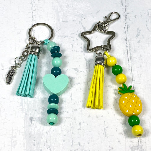Pärlbar nyckelring i vit akryl.Öppningsbar metallstift, kulan längst ner har ett skruvlås.Perfekt för att göra din helt personliga nyckelring med d...