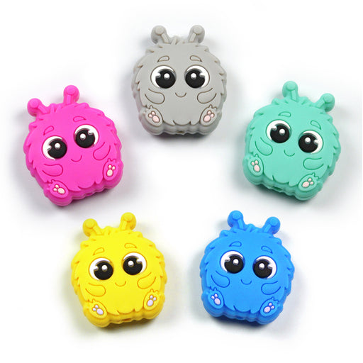 Silikonpärla i form av ett gulligt monster, 100% BPA-fritt silikon. Passar perfekt till bitleksaker, napphållare, vagnhänge, halsband och nyckelrin...