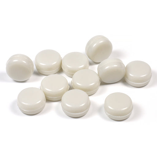 Skallra, rund cylinder i vitt. Vår största variant av skallra i akryl.Perfekt när man vill göra egna babyleksaker, virkade skallror, virkad aktivit...