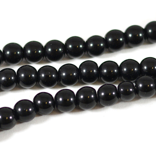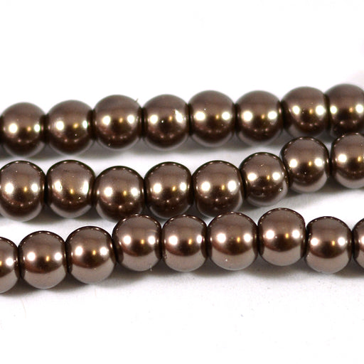 Runda, vaxade glaspärlor eller pärlimitation.Diameter är ca 6 mm.Håldiameter är ca 1 mm.Priset avser en sträng som ligger på ca 145 st pärlor.