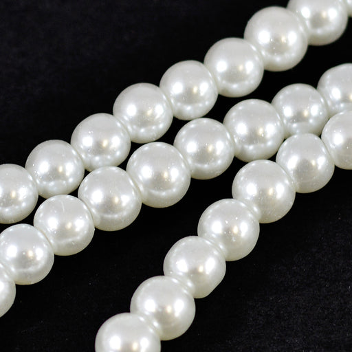 Vaxade glaspärlor eller pärlimitation.Diameter är ca 6 mm.Håldiameter är ca 1 mm.Priset avser en sträng som ligger på ca 145 st pärlor.
