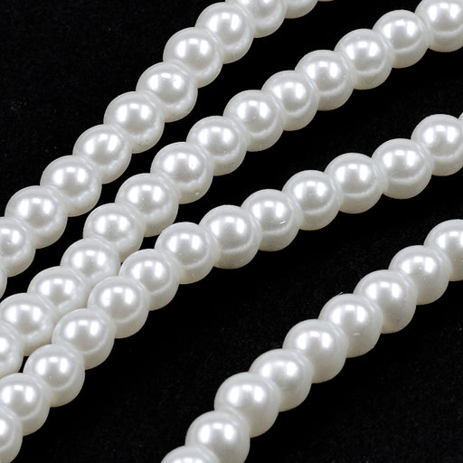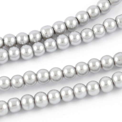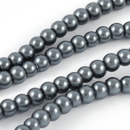 Runda, vaxade glaspärlor eller pärlimitation.Diameter är ca 4 mm.Håldiameter är ca 1 mm.Priset avser en sträng som ligger på ca 215 st pärlor.