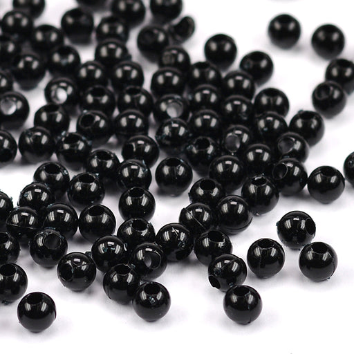 Runda, svarta pärlor i akryl.Diameter är ca 4 mm.Håldiameter är ca 1 mm.Priset avser en påse med ca 900st pärlor.Ej lämplig för barn under tre år.