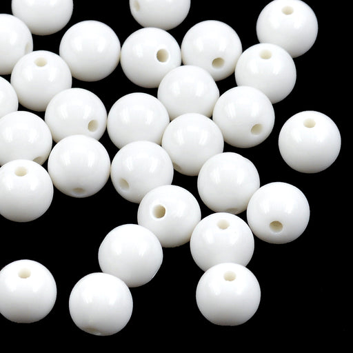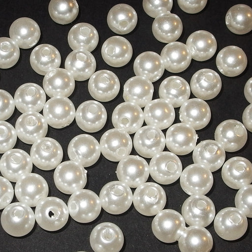 Runda, vita pärlor i akryl.Diameter är ca 8 mm.Håldiameter är ca 1,5 mm.Priset avser en påse med ca 150st.Ej lämplig för barn under tre år.