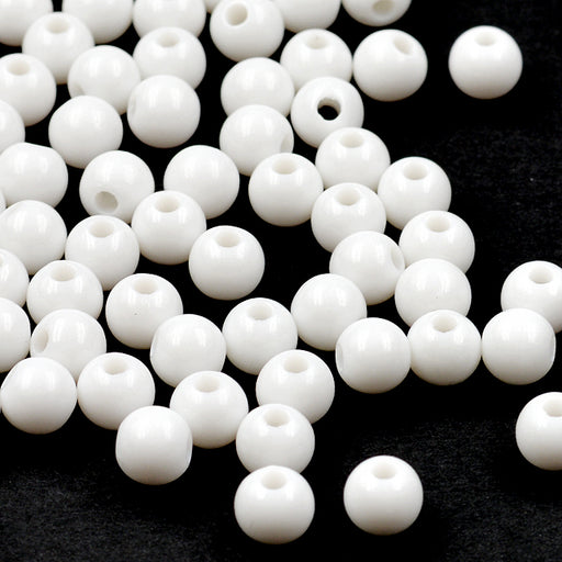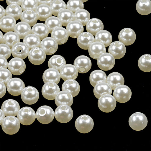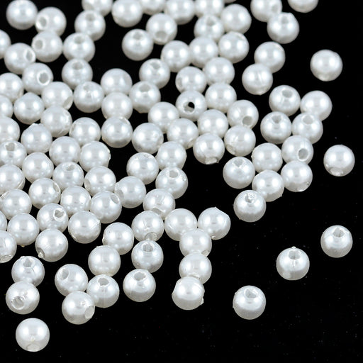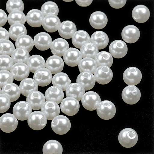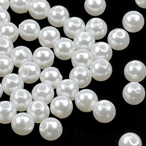 Runda, vita pärlor i akryl.Diameter är ca 6 mm.Håldiameter är ca 1,5 mm.Priset avser en påse med ca 300st pärlor.Ej lämplig för barn under tre år.