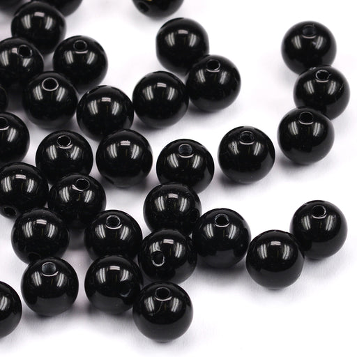 Runda, svarta pärlor i akryl.Diameter är ca 8 mm.Håldiameter är ca 1,5 mm.Priset avser en påse med ca 150st.Ej lämplig för barn under tre år.