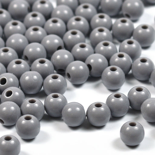 Runda pärlor i akryl, grå.Diameter är ca 6 mm.Håldiameter är ca 1,5 mm.Priset avser en påse med ca 300st pärlor.Ej lämplig för barn under tre år.