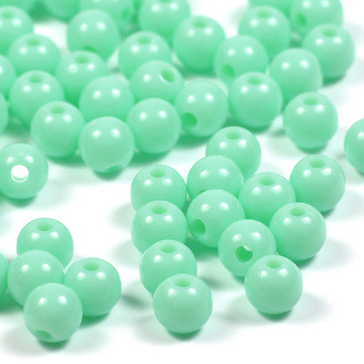 Runda pärlor i akryl, mint.Diameter är ca 6 mm.Håldiameter är ca 1,5 mm.Priset avser en påse med ca 300st pärlor.Ej lämplig för barn under tre år.