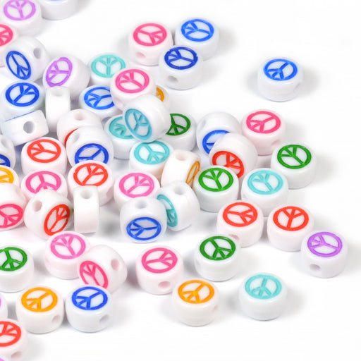 Visa fullständig informationVita pärlor med peace-tecken, färgmix, 100st