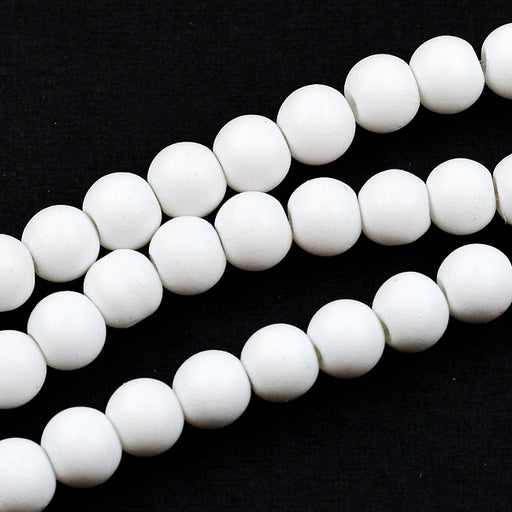 Runda, gummiklädda glaspärlor med matt utseende och len yta, spraymålade.Diameter är ca 8 mm.Håldiameter är ca 1 mm.En sträng ligger på ca 95 st pä...