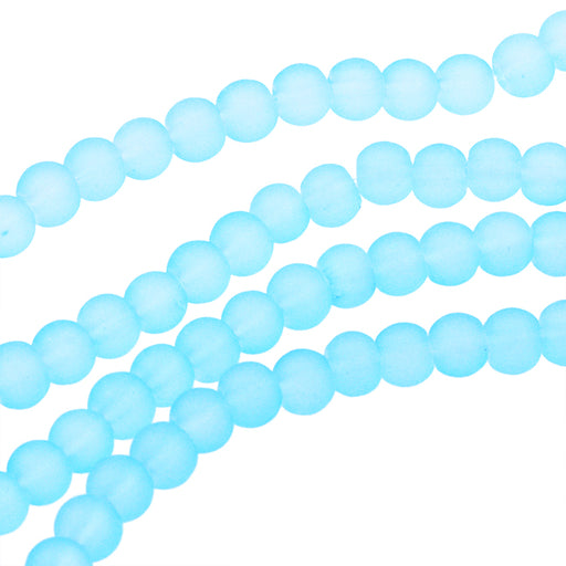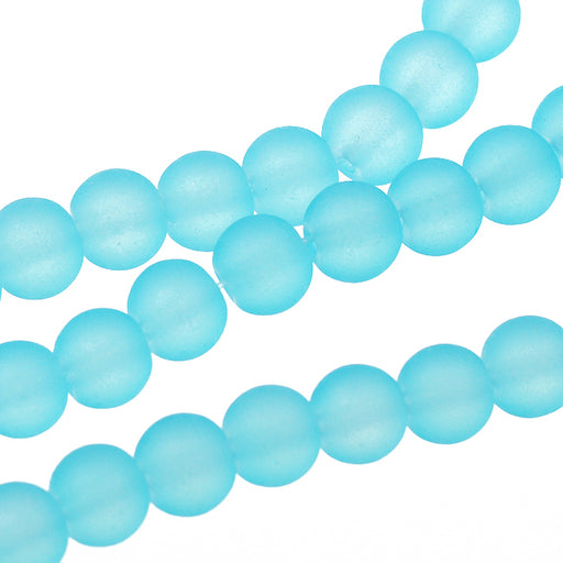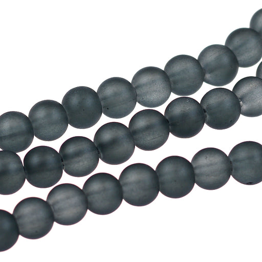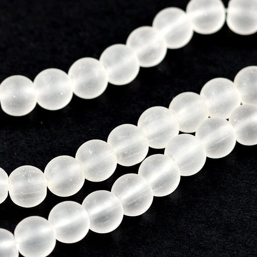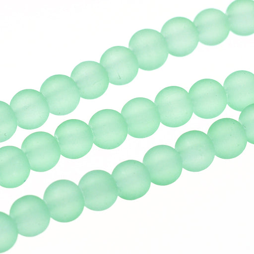 Runda, frostade glaspärlor, spraymålade.Diameter är ca 6 mm.Håldiameter är ca 1 mm.Priset avser en sträng som ligger på ca 135 st pärlor.
