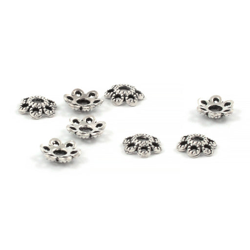 Pärlhattar av antiksilverfärgad metall, 6-bladig liten blomma.Diameter är ca 5,5–6 mm, tjocklek är ca 1,7 mm.Håldiameter är ca 1,7 mm.Passar till p...