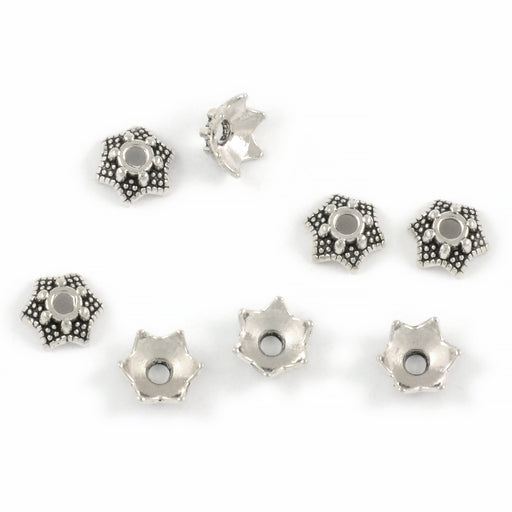 Pärlhattar av antiksilverfärgad metall, stjärnform.Diameter är ca 6 mm, tjocklek är ca 3 mm.Håldiameter är ca 1,5 mm.Passar till pärlor som är ca 6...