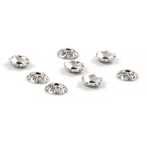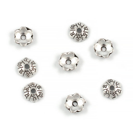 Visa fullständig informationPärlhattar, blomma med symboler, antiksilver, 6mm, 30st