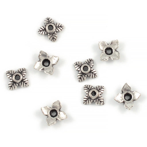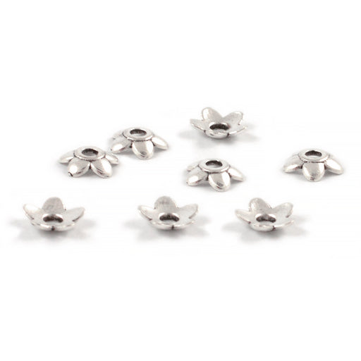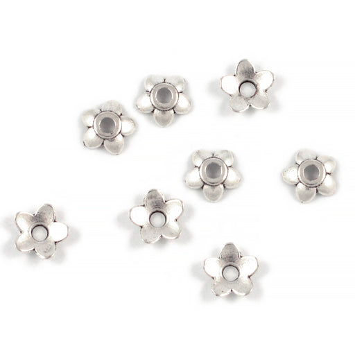 Pärlhattar, 5-bladig blomma, antiksilver, 6mm, 20st