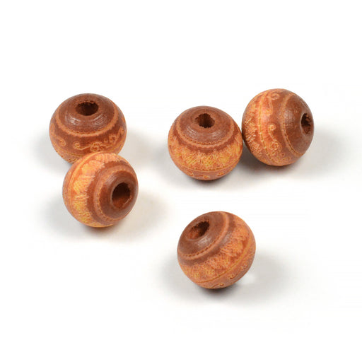 Träpärlor / träkulor med vackert graverat mönster. Färg: burlywood (brun)Storlek är ca 10x9 mm.Håldiameter är ca 2–2,5 mm.Priset avser en förpackni...