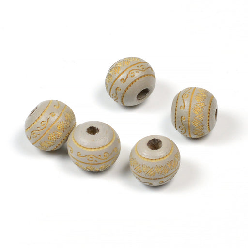 Träpärlor / träkulor med vackert graverat mönster. Färg: ivoryStorlek är ca 10x9 mm.Håldiameter är ca 2–2,5 mm.Priset avser en förpackning med ca 2...