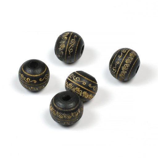 Visa fullständig informationTräpärlor med graverat mönster, 10x9mm, svart, 20st
