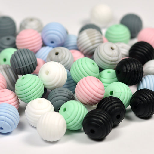 Rund, räfflad silikonpärla, 100% BPA-fri.Uppfyller kraven enligt DIN EN 71-3.Storlek är ca 15 x 14 mm.Håldiameter är ca 2 mm.Priset avser 1st.Enski...