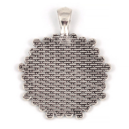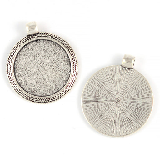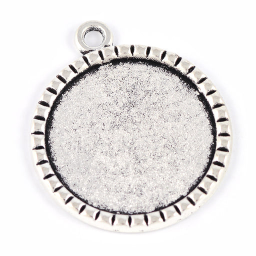 Antikt silverfärgad ramberlock med ornament runt om.Matchar cabochoner med diameter 25mm.Välj önskad antal i menyn.Diameter är ca 35 mm plus ögla.I...