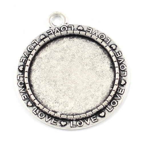 Antikt silverfärgad ramberlock med hjärtan och texten "LOVE" runt om.Matchar cabochoner med diameter 25mm.Välj önskad antal i menyn.Diameter är ca ...