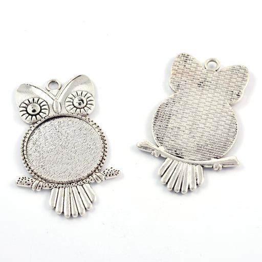 Antikt silverfärgad ramberlock i form av en uggla.Matchar cabochoner med diameter 25mm.Välj önskad antal i menyn.Storlek på ugglan är ca 30 x 54 mm...