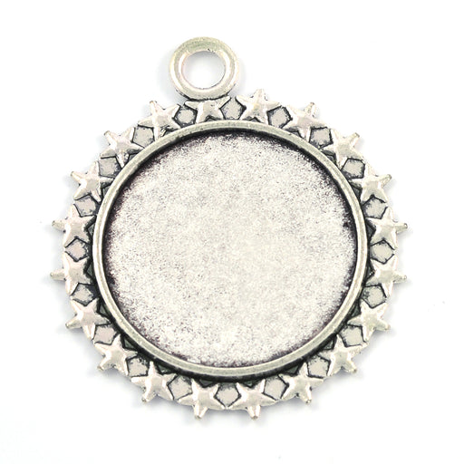 Antikt silverfärgad ramberlock med stjärnor runt om.Matchar cabochoner med diameter 25mm.Välj önskad antal i menyn.Diameter är ca 34 mm plus ögla.I...