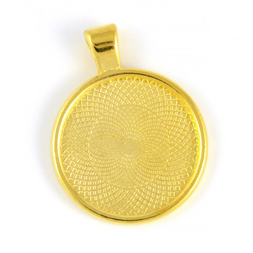 Guldfärgad ramberlock, stilren.Matchar cabochoner med diameter 25mm.Välj önskad antal i menyn.Diameter är ca 29 mm plus ögla.Innerdiameter är ca 25...