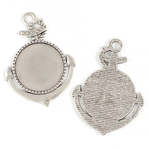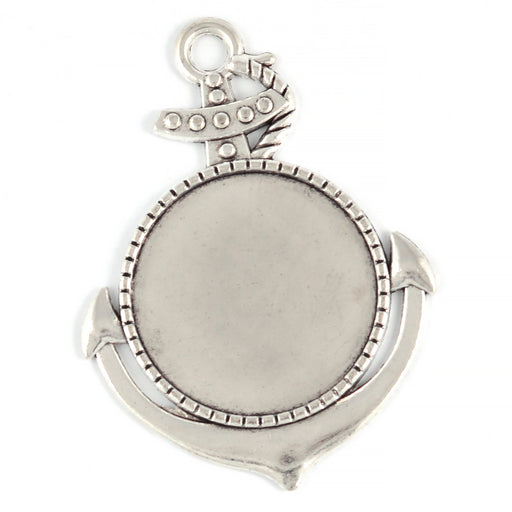 Antikt silverfärgad ramberlock med ankare och rep.Matchar cabochoner med diameter 25mm.Välj önskad antal i menyn.Storlek är ca 50 x 37 mm inkl. ögl...