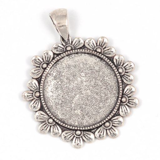 Antikt silverfärgad ramberlock med blomsterblad runt om.Matchar cabochoner med diameter 25mm.Välj önskad antal i menyn.Diameter är ca 38 mm plus ög...