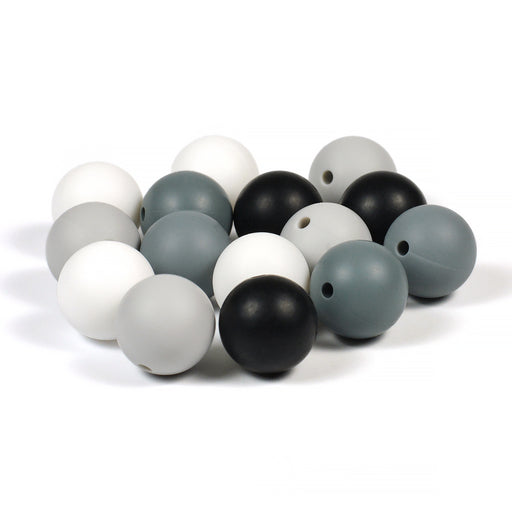 Visa fullständig informationSet med silikonpärlor, "svart-vit", 15mm, 15-pack