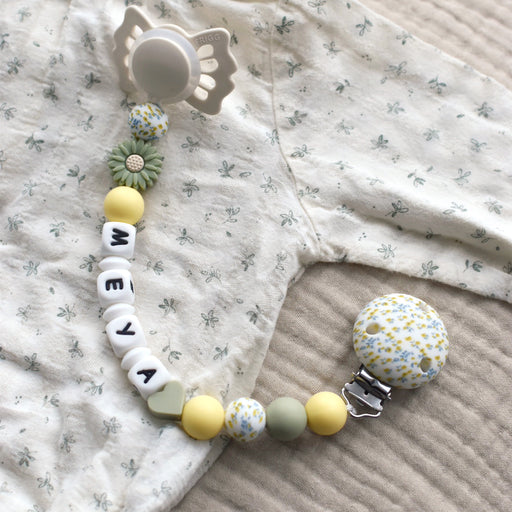 Silikonclips med mönstret "vårblommor". Clipset är i BPA-fri silikon samt rostfritt stål och har 3 ventilationshål.Med fin blomprint.Ur LilyTigers ...